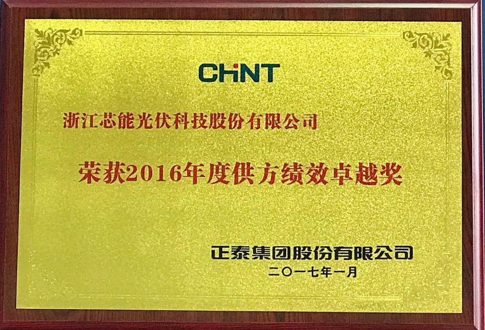 日前,芯能科技榮獲正泰集團(tuán)股份有限公司頒發(fā)的2016年度供方績效卓越獎。正泰集團(tuán)作為國內(nèi)的優(yōu)秀企業(yè),近年來一直是浙江乃至中國“走出去”企業(yè)的典范,其在光伏行業(yè)的影響力與日俱增。正泰集團(tuán)下屬新能源企業(yè)成立初期,芯能科技便與之建立起合作關(guān)系。多年來,芯能科技憑借多晶硅片的優(yōu)異性能、穩(wěn)定質(zhì)量和長期可靠性贏得了正泰的高度認(rèn)可和信賴,多次榮獲正泰頒發(fā)的優(yōu)秀供應(yīng)商等榮譽(yù)獎項(xiàng)。同時(shí)雙方在多個(gè)領(lǐng)域保持著戰(zhàn)略合作伙伴關(guān)系,在包括項(xiàng)目開發(fā)、技術(shù)研發(fā)等領(lǐng)域開展深度合作。