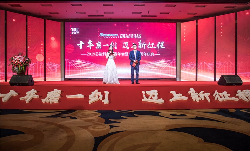 2019年1月23日,芯能科技“十年磨一劍 邁上新征程”2019新春年會暨成立10周年慶典在海洲大飯店隆重舉行。公司及下屬子公司全體員工、重要合作伙伴以及行業專家等500多人歡聚一堂,辭舊迎新,共同奏響新年華美的樂章。