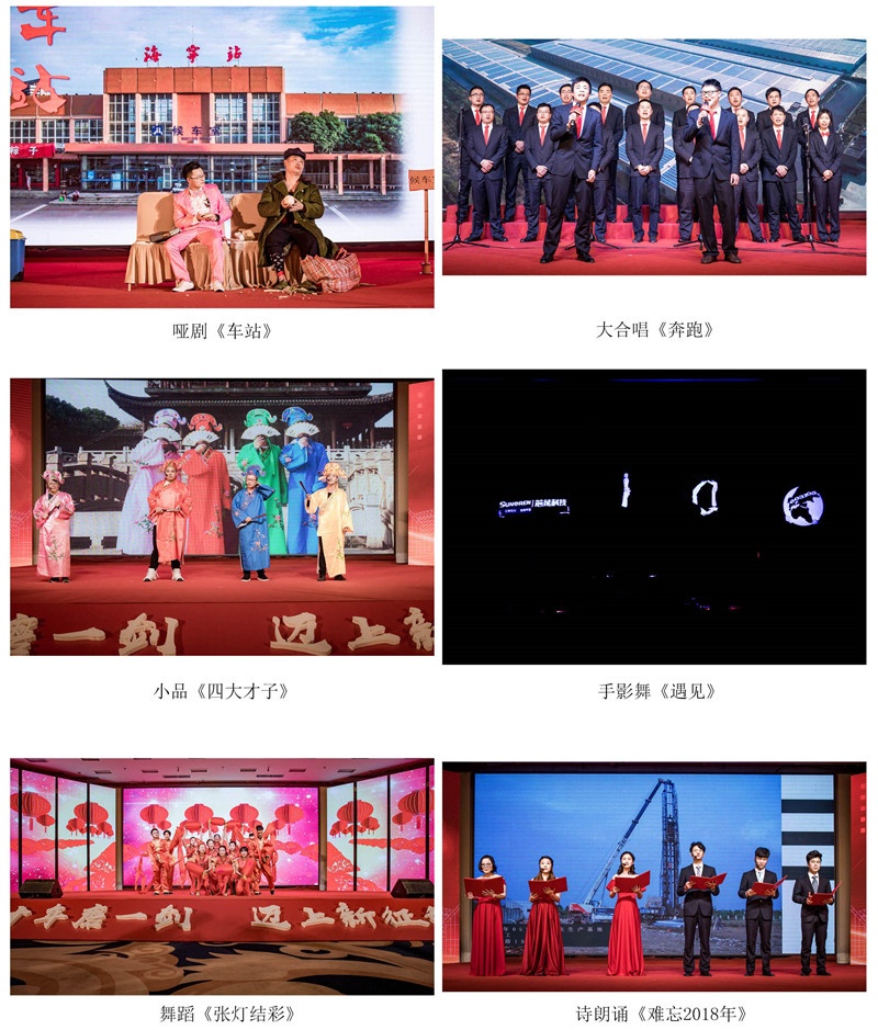 年會上還呈現了一臺由芯能人自行表演的豐富多彩的歌舞表演。喜慶歡樂的舞蹈《張燈結彩》拉開了歌舞表演的序幕,點燃了現場的熱情。有巧妙的將電站事業部日常工作融入到小品之中的《江南四大才子》,表演詼諧、有張力;原創作品詩朗誦《難忘2018》書寫2018年公司經歷的點點滴滴;別具一格的手影舞《遇見》;僅僅依靠肢體語言和面部表情便能惟妙惟肖展現一個小故事的啞劇《車站》;此外還有歌喉美妙的個人獨唱等,無不彰顯著芯能人的活力和文藝才能。期間穿插的微信紅包大放送,更是頻頻將年會氣氛推向高潮。