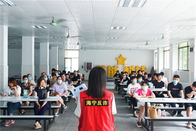 為進一步提高企業員工反詐防騙意識,加大“全民反詐”宣傳力度,8月24日,海寧經濟開發區(海昌街道)聯合當地派出所反詐宣傳隊走進芯能科技,為我司員工開展了一次面對面的反詐培訓。